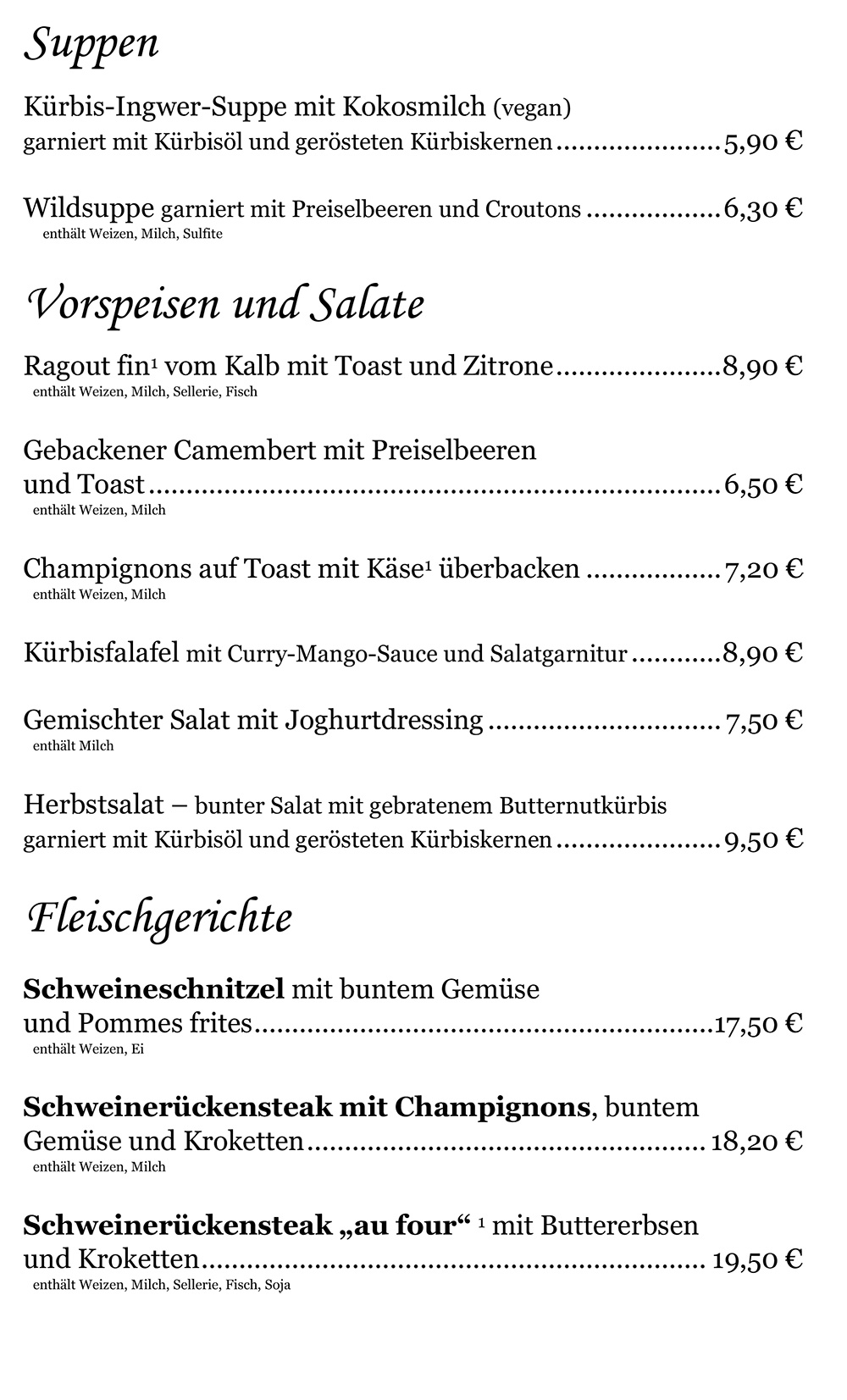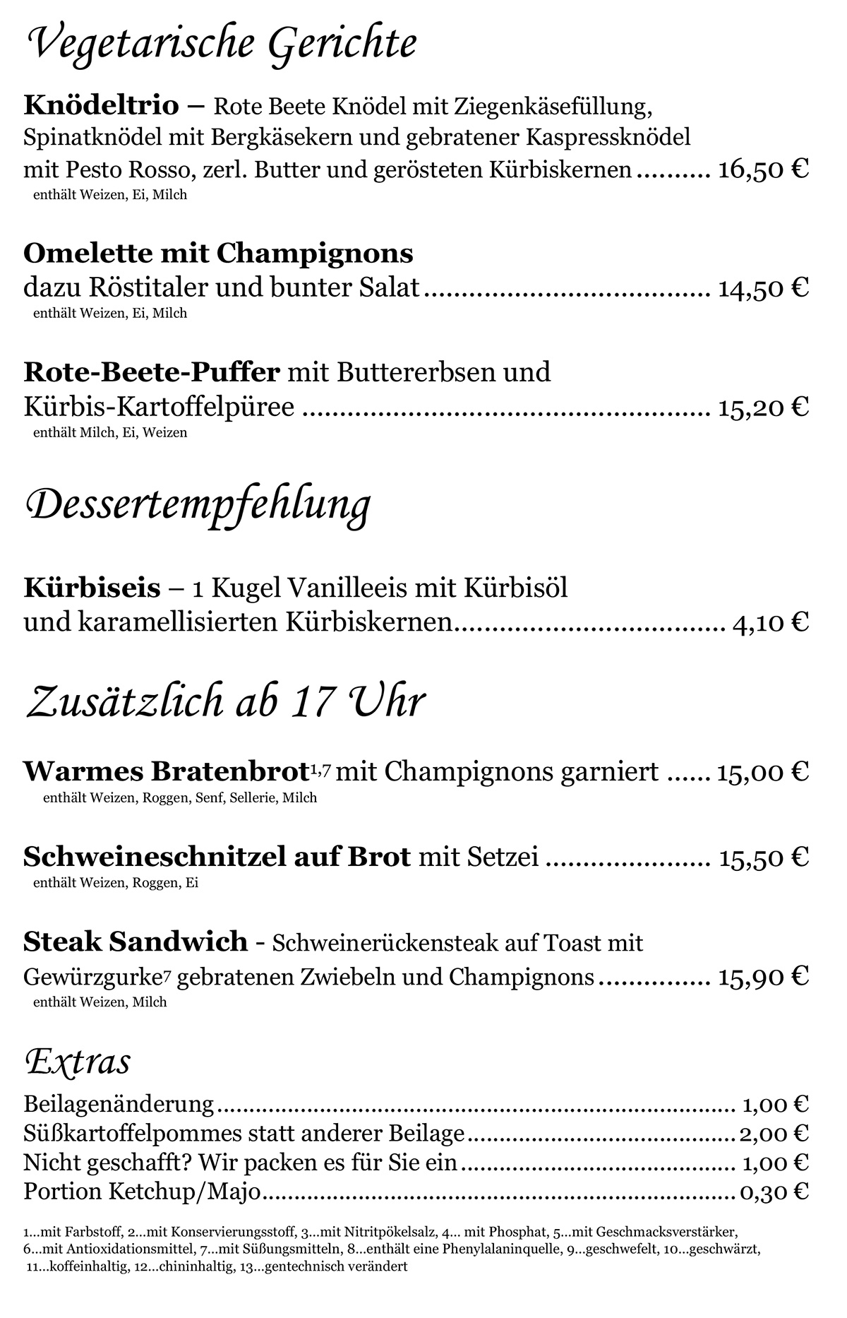 Um unser Angebot vielfältig und abwechslungsreich zu gestalten, ändert sich unsere Speisekarte je nach Saison.