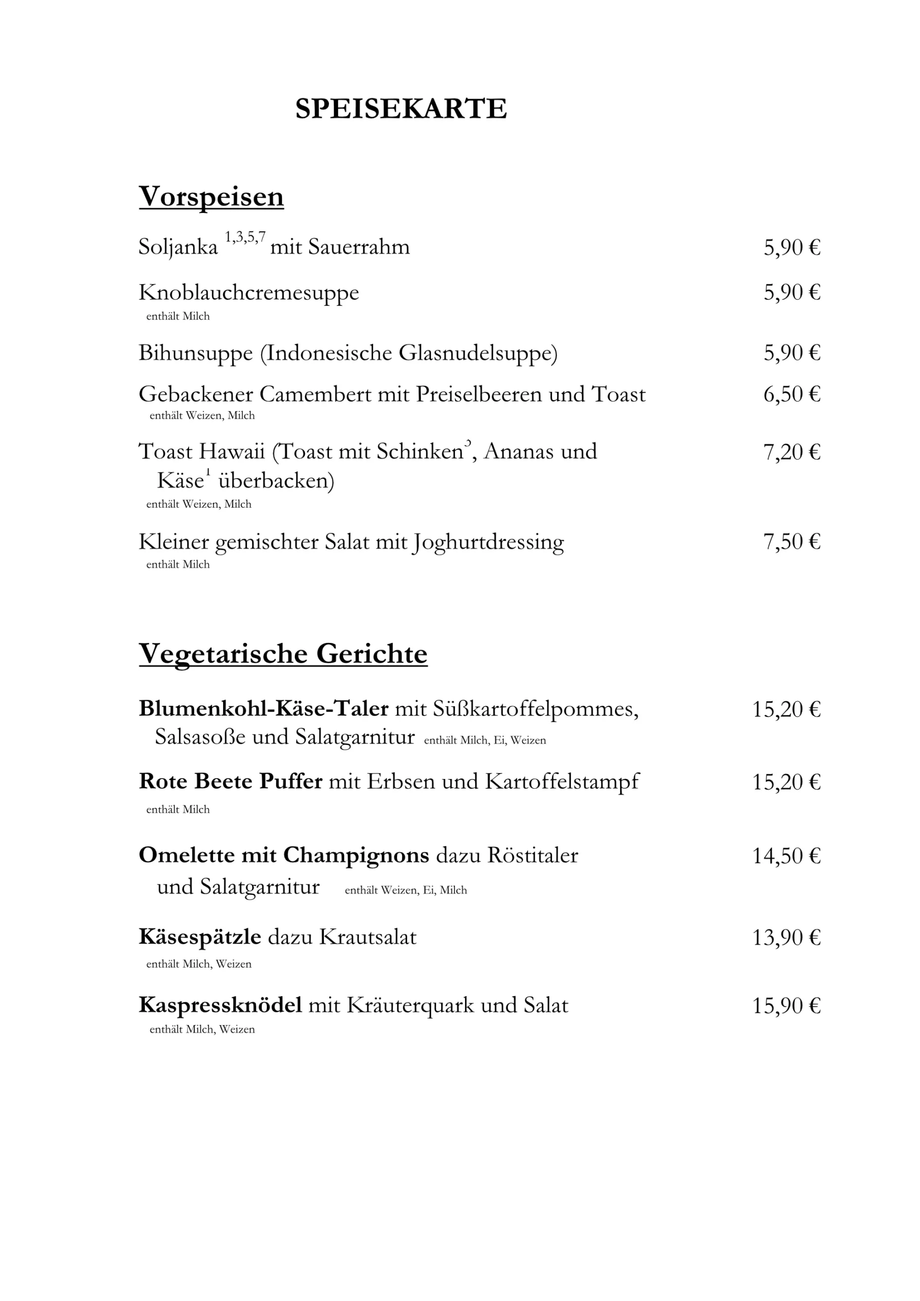 Um unser Angebot vielfältig und abwechslungsreich zu gestalten, ändert sich unsere Speisekarte je nach Saison.